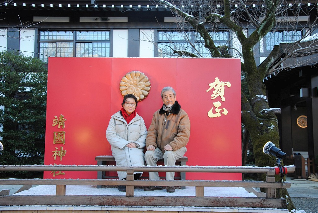 This year is Horse year on the rotation of the 12 zodiac animal signs. In front of the main hall (Haiden) - Photo-1, we pay respect for the KIA soldiers of Nippon and throw a coin into the offering box. Mildly snow-covered main hall (Haiden) - Photo-2 . Platform stage for taking a ceremonial photograph - Photo-3.